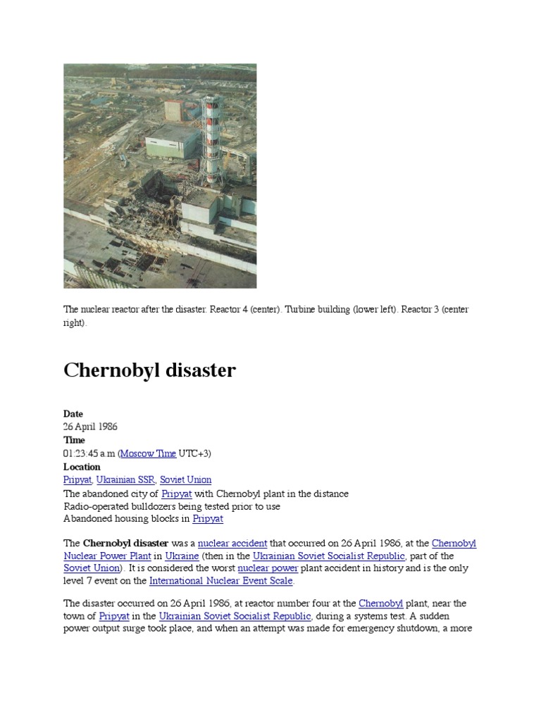 On april 26, 1986, the no. The accident at a nuclear power plant in ukraine shocked the world, permanently altered a region the cleanup of the area surrounding the chernobyl nuclear disaster is expected to continue for on april 25 and 26, 1986, the worst nuclear accident in history unfolded in what is now northern ukraine. Saturday, april 26, 1986 00:28 a.m. After the explosion, the nuclear power station was covered in radioactive dust. The april 1986 disaster at the chernobyl a nuclear power plant in ukraine was the product of a flawed soviet reactor design coupled with serious mistakes made by the plant operators b.