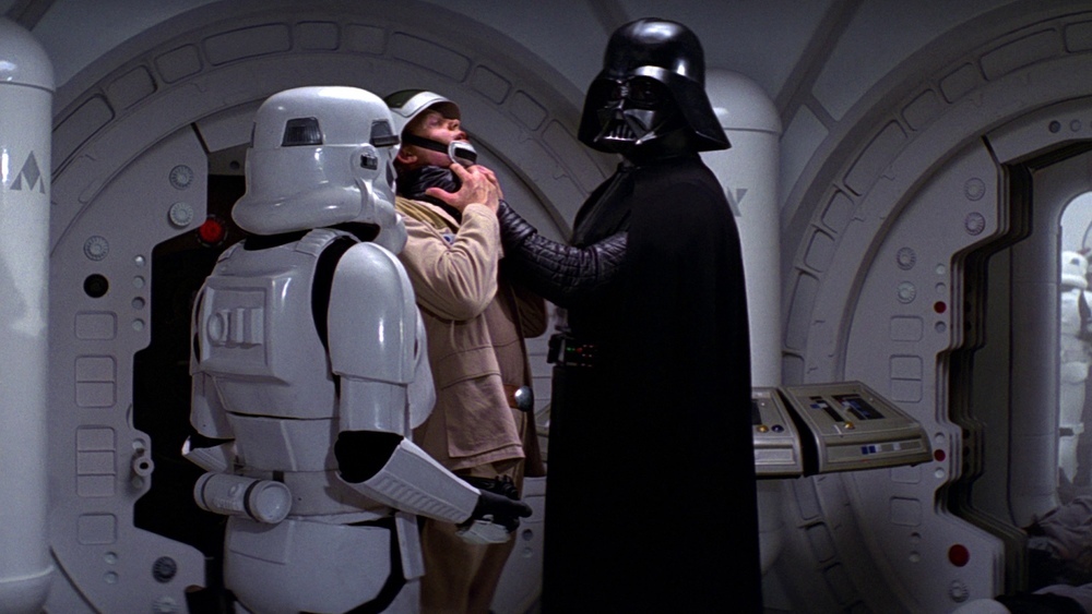 Darth vader unleashes his rage looking for the plans of the death star.