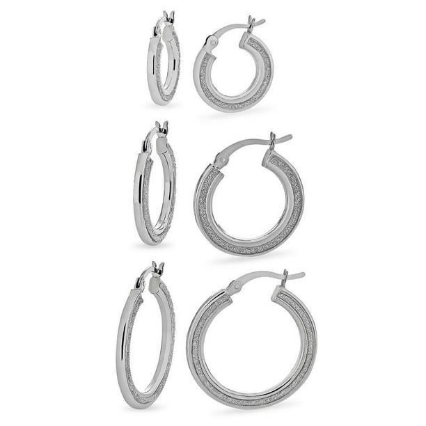 All sterling silver bracelets sterling silver charms sterling silver earrings sterling silver jewelry sets sterling silver necklaces sterling silver rings. Gleaming round earstuds with rivioli or chaton setting add just enough precious metal appeal for an understated earnuts included. From sophisticated silver studs to party ready drop earrings and statement hoops, shimmer in silver and find the perfect pair. Revere sterling silver sleeper hoop earrings set of 3. 925 sterling silver lady's 11mm knot crystal stud earrings antique style gift.